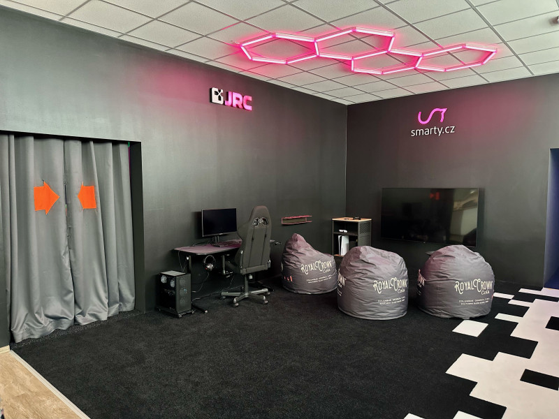 Gaming zóna je vybavena ve spolupráci se Smarty.cz a JRC, herní konzolí playstation 5, xbox, herní počítač Tigo.